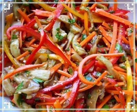 Кушать их можно с шашлыками или гарнирами. Гости не с первого раза понимают, что это за овощи вы им предложили, но никто не отказывается. Потому что этот салат очень вкусный, и не имеет значения, был ли он закрыт на зиму и готовился для быстрого употребления. Советую всем.
