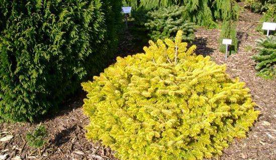 Хвоинки тоже совсем небольшие, до 2 см в длину. Сверху имеют золотисто-желтый оттенок, снизу – желтовато-белый. Этот сорт пихты хорошо использовать для украшения альпийских горок в южных регионах страны.