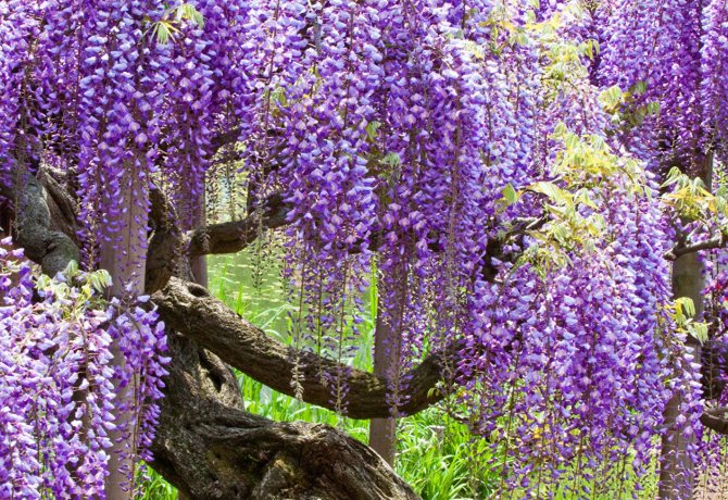 Кусочек японского парка Асикага со струящимися кистями соцветий вполне возможно вырастить на собственном дачном участке в умеренном климате, ведь отдельные сорта лианы довольно морозостойкие.