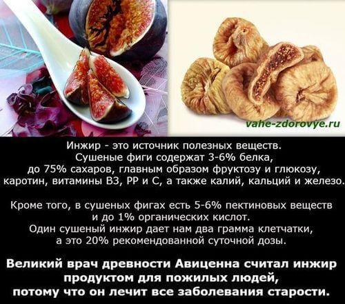 Лечебные свойства сушеного инжира известны давно. Это эффективное общеукрепляющее, тонизирующее, иммуномодулирующее, противопростудное средство. Наиболее распространено его использование в десяти случаях.