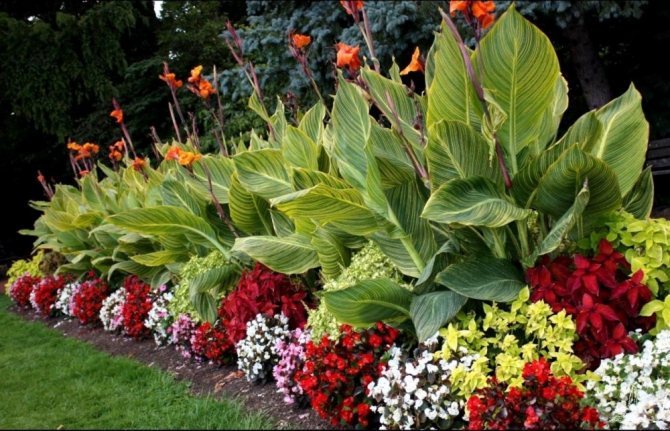 Выращивание канны вместе с другими растениями на клумбе не принесет вам никаких хлопот, ведь этот цветок прекрасно уживается с соседями. Главное правило — учитывать скорость роста цветов, высаженных на одной грядке, чтобы более быстрорастущие не заглушили своих медленных соседей. Намного облегчит уход за такой клумбой и подбор растений с одинаковыми требованиями по почве и частоте полива.