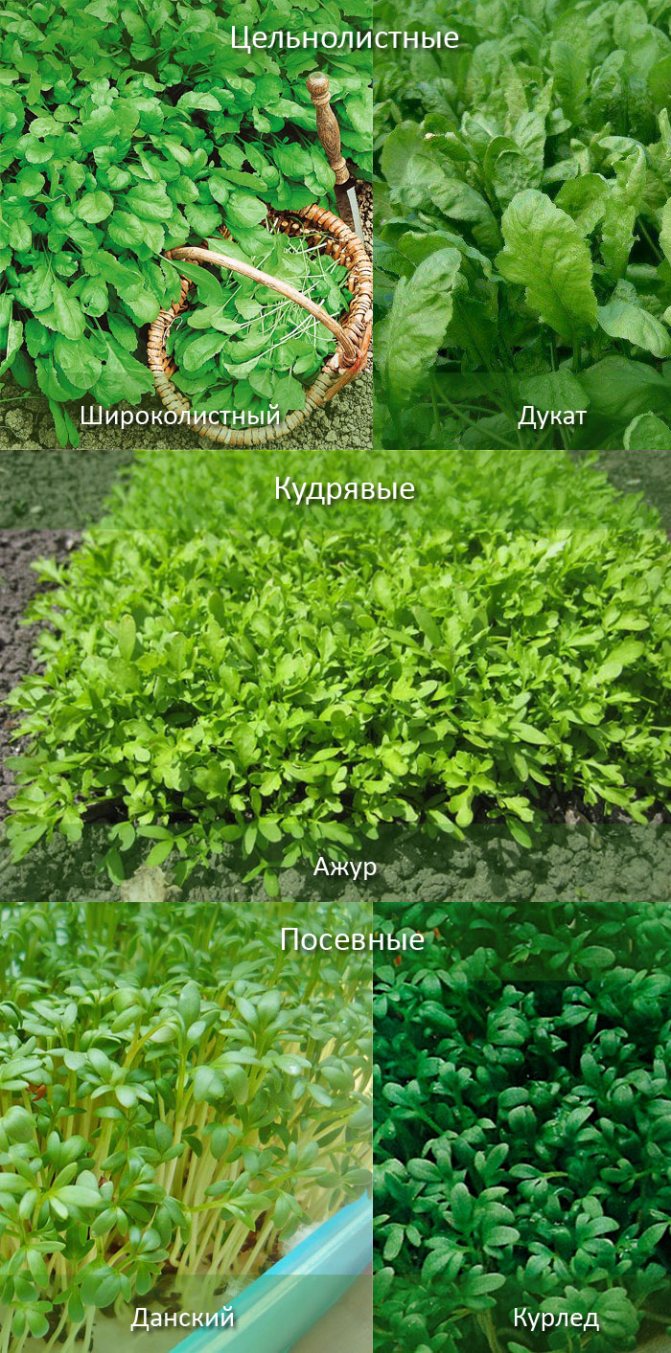 Выделяют несколько подвидов растения: посевной, с цельными листьями и с кудрявыми. Все они отличаются друг от друга внешним видом.