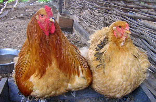 Палевая (буфф) | Палевые птицы крупные, мощные, жилистые. Окрас пера светло-коричневый, рыжий. У курочек голова и хвост имеют более темный оттенок. У самцов хвост чисто-черный, а на боках, спине и загривке присутствуют темные полоски. Если наблюдается большой процент красного и желтого пера, это значит, что особь не является чистокровной.