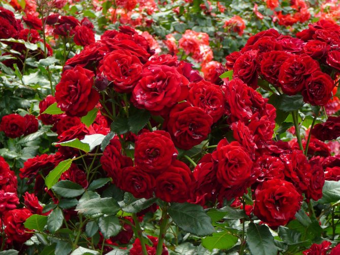 Важно! Кустовые розы, в зависимости от их сорта, при выращивании требуют определенного межкустового расстояния – от метра до двух, а иногда и больше. Если этого не учесть, разрастаясь, растения только будут мешать друг другу, а это приведет к снижению их декоративности. Кроме прочего, такие кусты не проживут положенных им лет.