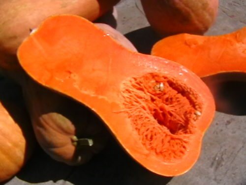 Тыква зимняя сладкая – рекомендуется для выжимки сока. Плети растения средней длины, а все может достигать 8 киллограмм. Окрас плодов серый, а мякоти – желтый или оранжевый. Цветет ближе к осени, хранение не вызывает проблем.