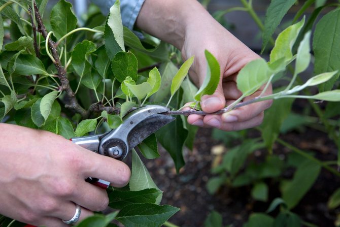 В течение лета можно обрезать отрастающие веточки диаметром не более 2,5 см без замазки. Необходимо также удалять корневую поросль. Для этого от корневой шейки же удаляют корневую поросль.
