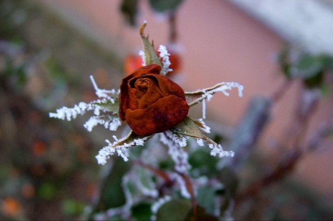 Если температура превысила +5°С, необходимо немедленно снизить её. Для этого можно полить растения холодной водой. Также можно занести в помещение снег или лёд. Их укладывают отдельно от кустов. Если насыпать снег между ними, то розы быстро покроются плесенью.