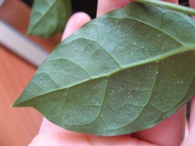 Если листья желтеют и опадают — это признак появление белокрылки — крошечной белой мушки. Следует отметить, что наносят вред цветку не взрослые особи, а их личинки, схожие на тлю. Перевернув листья зараженного бальзамина, на обратной стороне листа видно много маленьких насекомых, выделяющих сладкий сок, в результате, листья, кажутся липкими. В борьбе с вредителями эффективно работают те же препараты, что в случае со щитовкой и клещом, плюс Фитоверм. Из народных средств хорошо зарекомендовал себя мыльный раствор из хозяйственного мыла, раствор из средства для мытья посуды и луковая настойка.