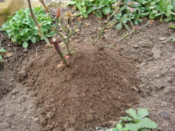 Важно!Окучивание землей — не самодостаточный способ! В любом случае его нельзя использовать без последующего укрытия толстым снежным слоем. К тому же эта технология подходит только для регионов с морозными зимами, следовательно, в любом случае нужно укрывать розы полноценно.