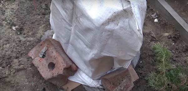 Кстати! Такой способ очень хорош, потому что между укрывным материалом и кустами должна быть воздушная прослойка.