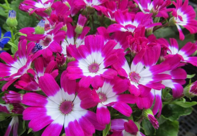 Цинерария кровавая, или гибридная (Cinerariacruenta или Seneciocruentus, или cinerariahybrida), она же красная – гибрид между двумя природными видами из Канарских островов, выведенный в 1777 году в британских королевских садах.